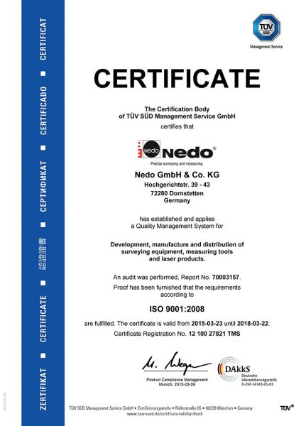 Calibration certificate for Nedo lightweight measuring wheels